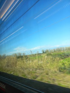 Quando acquisto un biglietto ferroviario è raro che scelga il posto. Mi lascio un po’ guidare dal caso, forse per pigrizia o forse per un leggero senso di fatalità. E così capita – com’è accaduto stavolta – che io debba sedere al lato del finestrino. Una soluzione che non mi entusiasma troppo perché mi dà poca libertà di movimento incastrata in un angolo, ma che stavolta però mi ha consentito di guardare il panorama soleggiato e primaverile che mi sfilava davanti agli occhi. Una piccola promessa di apertura dopo la mia partenza da una città avvolta nel grigio chiaro delle nuvole.